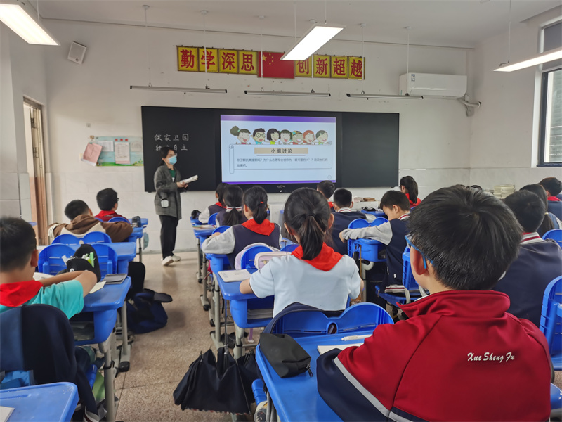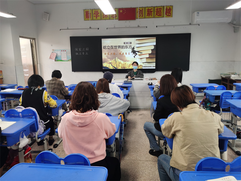 5月21日下午第三节课,青年教师水仪阳上了一堂生动的道德与法治课---《屹立在世界的东方》第二课时“保家卫国,独立自主”。我们全体道德与法治老师集中五(4)班教室参加了听课活动。