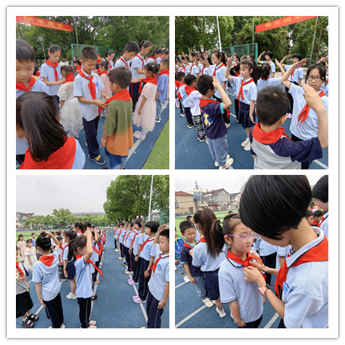 大队辅导员李佳斌老师宣读了新入队队员名单,听到名字的新队员们激动之情无以言表。高年级的大哥哥大姐姐为新队员们授予了红领巾标志。