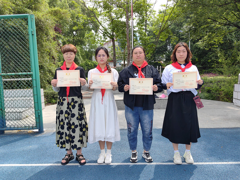 钮校长为新任中队辅导员颁发聘书,李佳斌为一年级各中队授旗,以此激励广大少先队员听党话、跟党走,刻苦学习,砥砺品格,争做有理想、有本领、有担当的社会主义接班人。