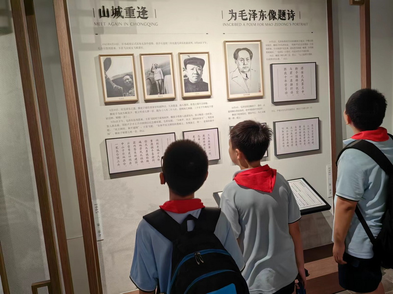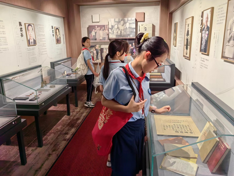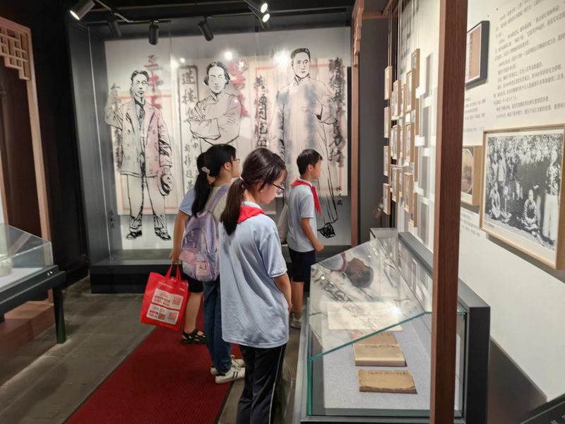 柳亚子纪念馆位于黎里古镇,馆内珍藏着柳亚子与南社方面的文物、藏品和资料,生动的图片和视频向同学们全面介绍了柳亚子先生的家族情况,也展示着柳亚子先生与中国共产党人携手同行、风雨同舟的革命历程。