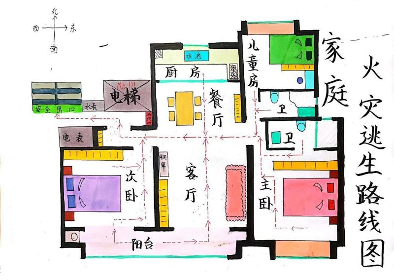 为进一步培养学生的安全意识,引导学生掌握逃生技能,暑期间学校布置了这份特殊的作业:画一张家庭逃生路线图并在家进行消防安全演练。