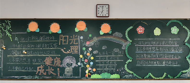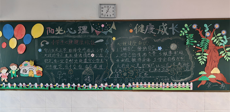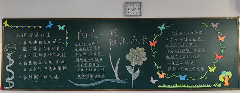 各班通过本次心理健康主题黑板报活动,向学生普及了心理健康知识,引导学生树立正确的健康观念,增强了学生的心理健康意识,对预防学生心理疾患的产生,提高学生的心理素质,起到了很好的作用。