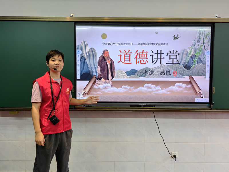 今年是公民道德宣讲日设立的第21年,为深入全面宣传社会公德、家庭美德、个人品德,2023年9月21日下午,八都社区新时代文明实践站与八都学校联合开设道德讲堂,以“孝道和感恩”为主题进行道德宣讲。此次宣讲人员为八都社区新时代文明实践站沈凯誉。
