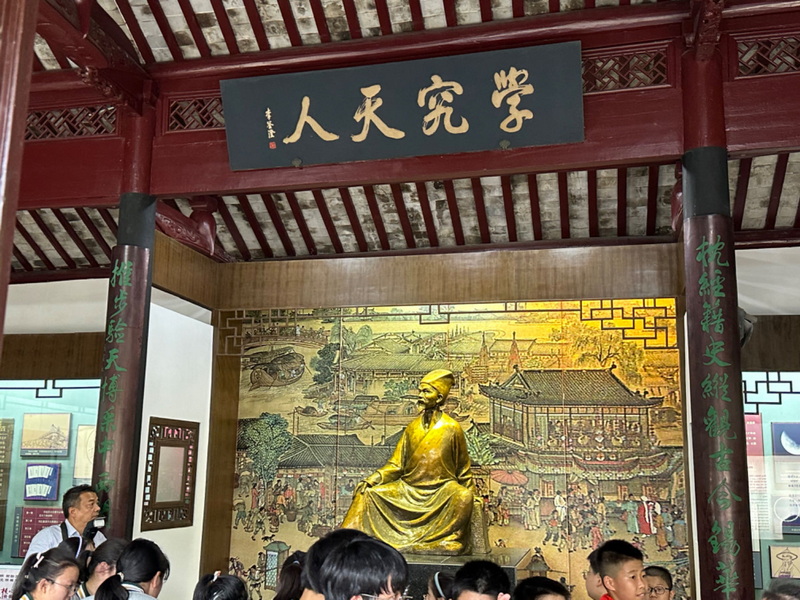 参观院士故居,涵养卓越品格。杨嘉墀故居位于杨嘉墀院士人生之路的起点——震泽镇底定街32号杨氏老宅。在讲解员的带领下,同学们走进这间古朴静谧的故居,阅览这位科学巨匠的历史事迹,一张张手稿,一页页工作笔记,一个个动人故事都流露出杨嘉墀院士严谨求实的治学态度,勇攀高峰的创新精神和矢志报国的爱国情怀,同学们在这里学习到了杨嘉墀院士砥砺前行的一生和为我国航空航天事业发展作出的卓越贡献。