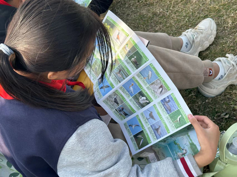 为了让学生更加深入的了解这些鸟类,老师们又给学生发了望远镜,让孩子们实地观察。在这个过程当中,学生们两人一组,漫步在田野之间,其中一人用手中的望远镜仔细寻找并观察着鸟儿,另外一人拿着手册寻找鸟儿的名字。期间,同学们观察到了站在岸边的白鹭,飞翔在天空的八哥,栖息在枝头的喜鹊,在水中觅食的黑水鸡……同时,同学们在这个过程中也知道了更多有关鸟类的知识以及如何使用望远镜观察鸟类。