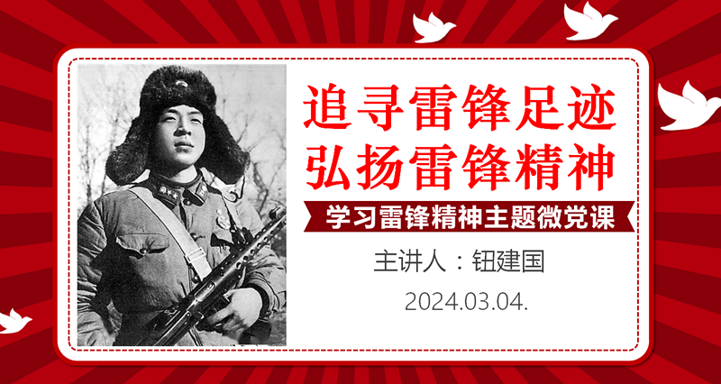 在第61个学雷锋纪念日到来之际,为了弘扬雷锋精神,汲取雷锋榜样力量,激励少年儿童学雷锋,做雷锋,争做雷锋精神的新时代传承人,八都学校党总支第一支部书记钮建国为全体少先队大队委委员开设了《追寻雷锋足记 弘扬雷锋精神》主题微党课。