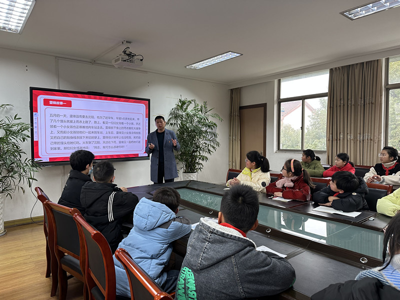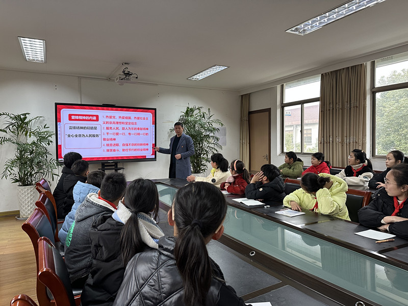 钮建国老师向大队委委员们介绍了雷锋同志的生平事迹,讲述了雷锋助人为乐的动人故事和雷锋纪念日的由来。他向大队委委员们阐述了雷锋精神的内涵,一起重温了雷锋的名言录,分享了多位党和国家领导人给予雷锋精神的高度赞誉。最后,钮建国老师和大队委员们互动畅谈“新时代少年该如何践行雷锋精神”这一话题。少先队大队长毛子晴说:“我要以雷锋同志为榜样,做一个学习有目标,心中有爱心,乐于助人,乐于奉献的新时代好少年。”
