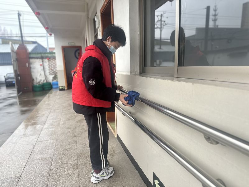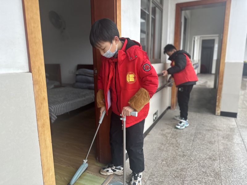 队旗飘扬,队员们身穿红色马甲,排着整齐的队伍走进了残疾人托养服务中心。队员们为残疾人士送上了慰问品,带去了真挚的关怀。随后,小志愿者们撸起袖子,在退休党员教师李志凤老师的带领下,为残疾人士房间的地面、窗户、橱柜等进行了里里外外的大扫除做到干净整洁,一尘不染。
