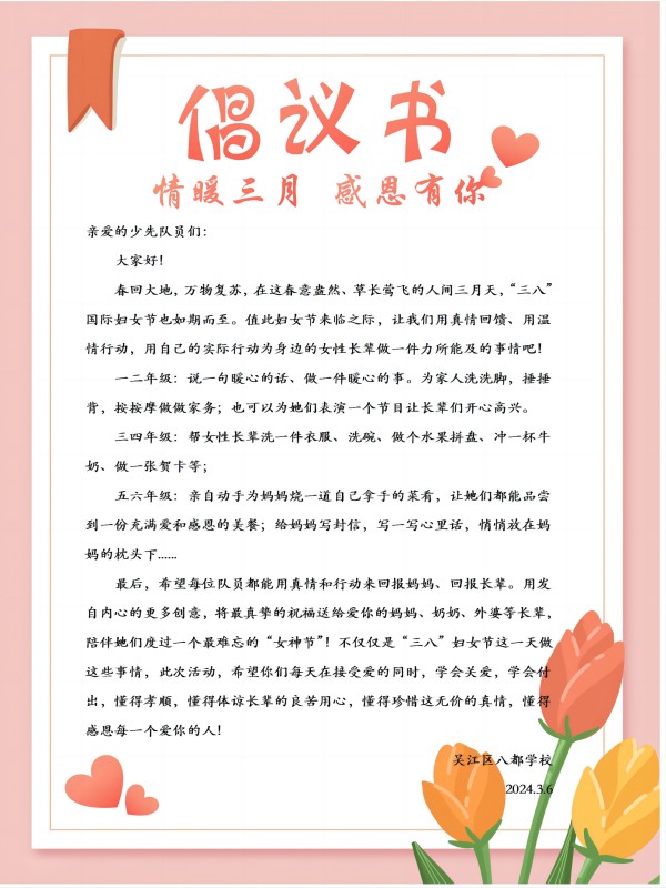 情暖三月 感恩有你 ——八都学校开展妇女节感恩主题教育活动