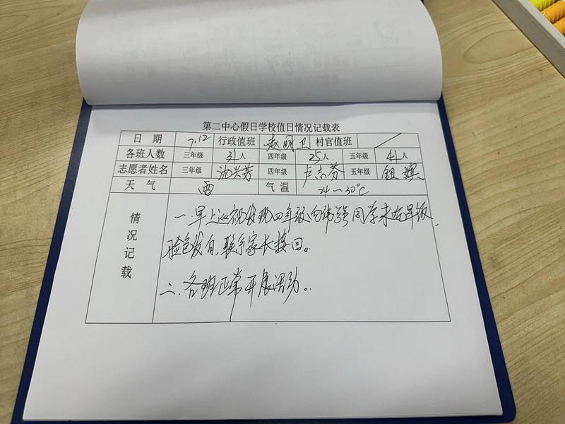 一是加强安全教育:在志愿者会议上,学校强调安全是第一位的,志愿者、学校安保人员、具体负责的赵老师都能把安全反复在第一位。在学生的开学典礼上,具体负责人赵老师就重点强调安全的重要性和要求同学们做到的方方面面的安全。例如早上要吃好早餐,到校可以安排家伙接送,到校后要坐在教室里看书写作业,天气炎热不要在外面奔跑,以免中暑,要做好个人和教室的卫生工作,不到学校施工区域玩耍等。