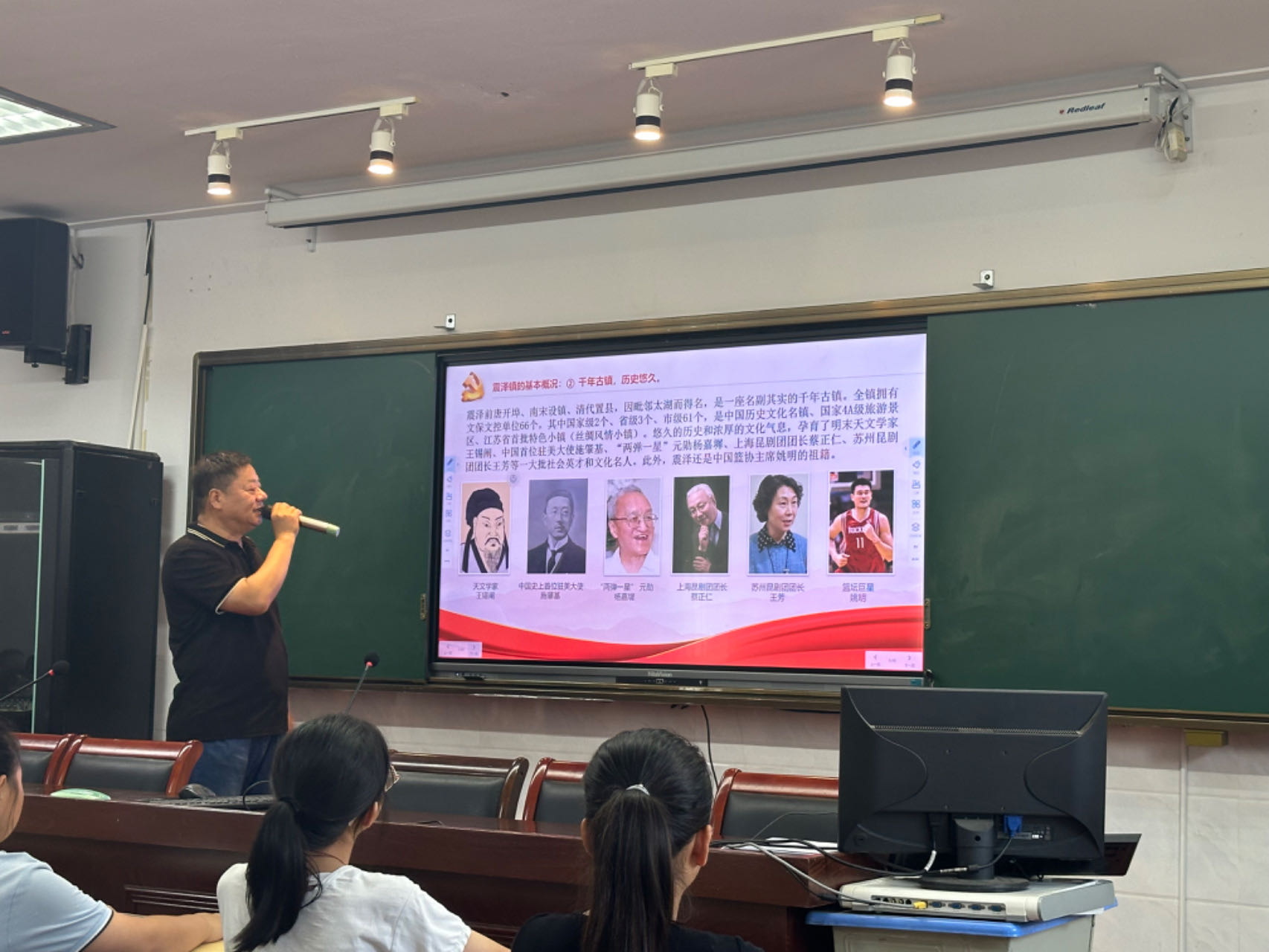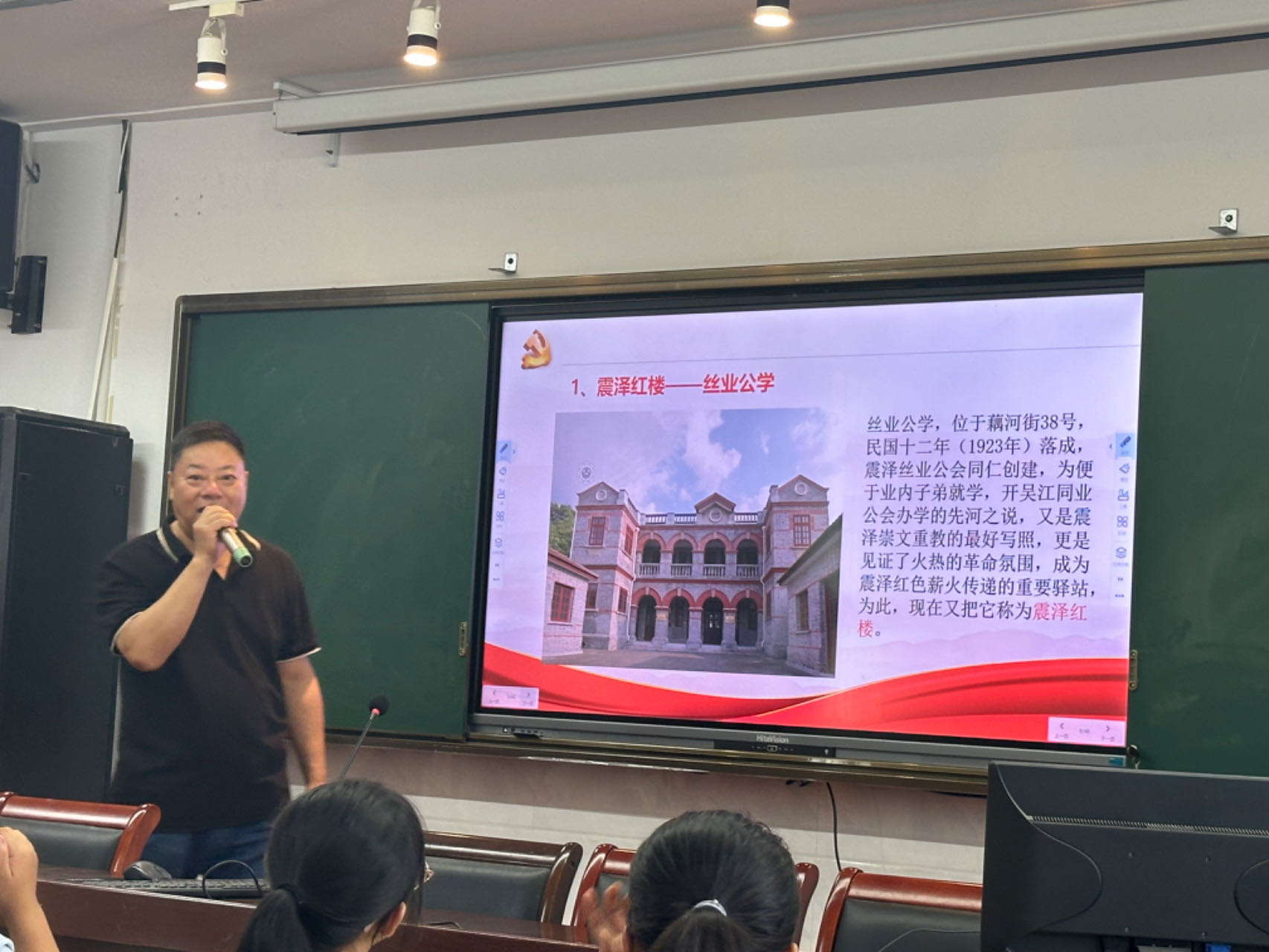 盛校长从五个维度来具体阐述:一是震泽的基本概况;二是从震泽红色印记中感悟发展成果的来之不易;三是在学习党史中汲取伟大精神力量,启航新征程。震泽的基本概况从:一特色小镇,区位独特;二是千年古镇,历史悠久;三是经济强镇,产业鲜明;四是田园乡村,环境优美。感悟成果来之不易,盛校长从震泽红楼—丝业工学盛、震泽革命史和“将生命化为银河中的一颗星——杨嘉墀”三方面来重点阐述,其中两弹一星奖章获得者“杨嘉墀”做了详细讲解。汲取精神力量重点讲述了我国的航空航天事业的发展壮大。校长用大量的具体事例、图片和数据,生动展示了讲座的内容。假日学校的震泽学生和新震泽人通过讲座进一步了解了历史震泽、美丽震泽、红色震泽,从而对震泽因了解而多了一份热爱之情。