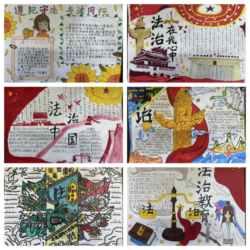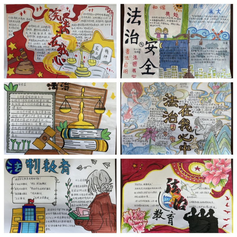 为进一步深化法治教育效果,学校还组织了“法治手抄报评比活动”。同学们积极参与,用手中的画笔描绘出对法治的理解和感悟。一幅幅色彩斑斓、内容丰富的手抄报作品,不仅展现了同学们对法治的深刻理解,也激发了他们学习法律知识的热情。