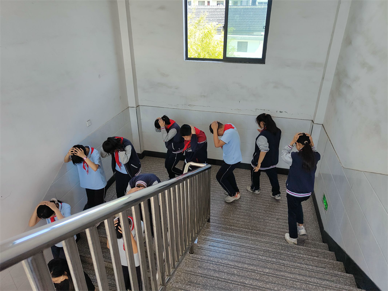 本次演练分成两个步骤。一是就地避震。就地避震在教室里展开,目的是要保护自己的身体,把损伤减小到最低限度,二是紧急疏散。紧急疏散目的是要远离危险区域,防止二次伤害。