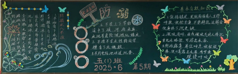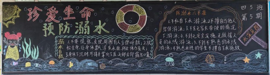 随着夏日气温持续升高,溺水事故进入高发期。为切实增强学生安全意识,提高自我保护能力,八都学校组织各班开展了“防溺水”主题黑板报宣传活动,为学生生命安全筑牢防护网。