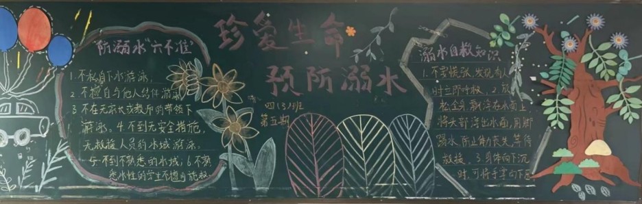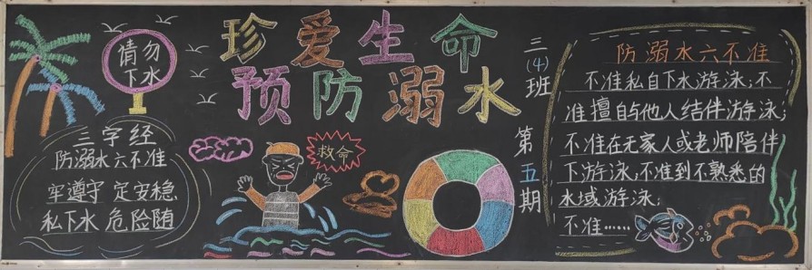 活动中,各班师生积极参与,围绕“珍爱生命,谨防溺水”主题,精心设计、巧妙构思。同学们通过查阅资料、收集案例,将防溺水知识与艺术创作相结合,运用生动的文字、鲜艳的色彩和形象的插图,将黑板报打造成了一个个鲜活的 “防溺水安全教育小课堂”。