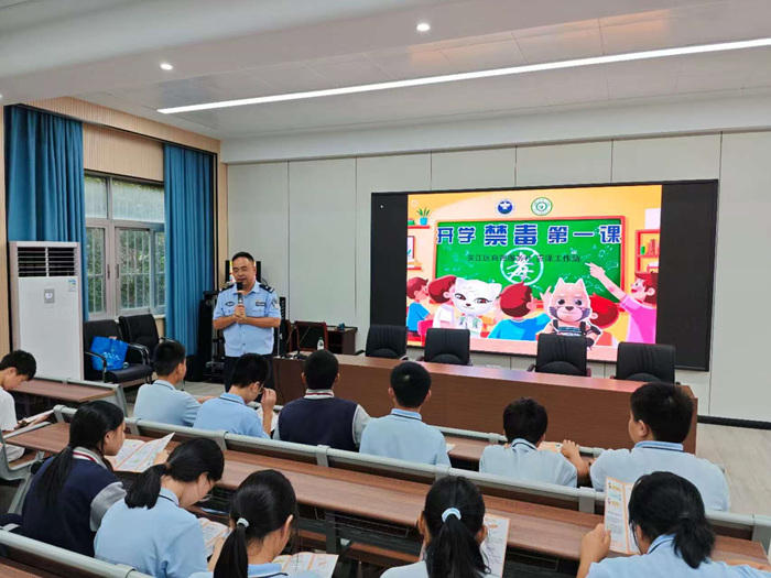 金秋送爽,丹桂飘香。在新学期伊始,为切实加强青少年毒品预防教育,提升学生识毒、防毒、拒毒的意识和能力,守护青少年身心健康,营造纯净和谐的校园环境,9月10日下午,八都学校特邀震泽镇禁毒教育专家张乾警官,在学校阶梯教室开设“开学第一课·健康人生,绿色无毒”禁毒教育专题讲座。六、八年级部分班级师生齐聚一堂,接受了这场深刻而难忘的禁毒知识洗礼。