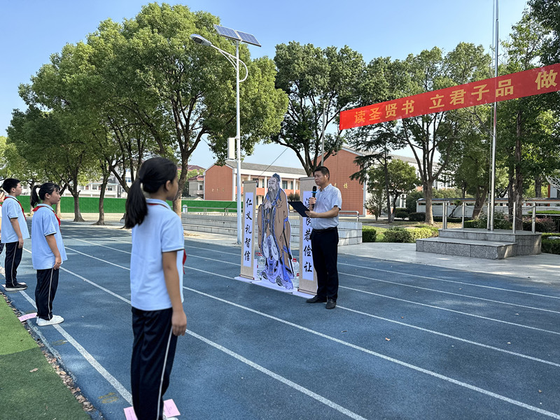 上午9时,活动在庄重的升旗仪式中拉开帷幕,全体师生高唱国歌,注视着五星红旗冉冉升起。随后,在校领导的带领下,全体师生面向至圣先师孔子像行深揖三拜礼,并齐声合唱《礼运大同》歌,悠扬的歌声回荡在校园中,传递出对传统文化深深的敬意。