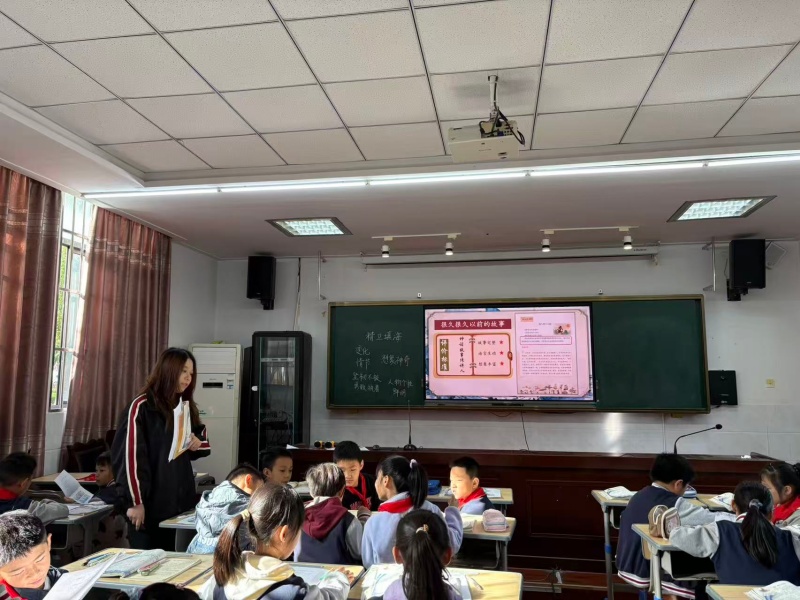10月21日,八都学校青年教师丁怡雯执教《精卫填海》,全体语文教师参与听课。