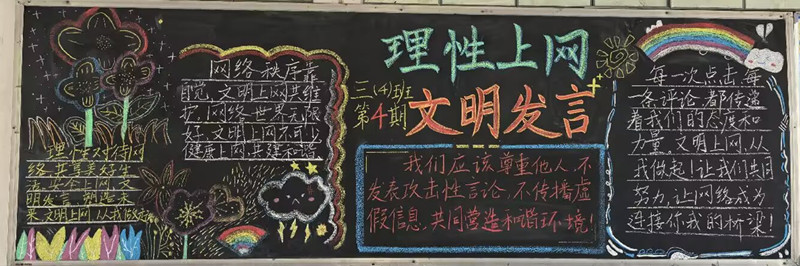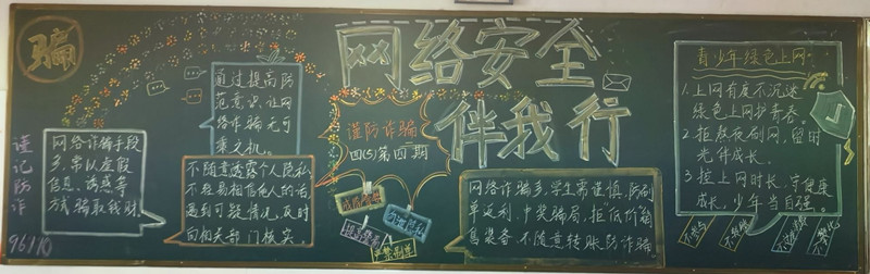 本次活动得到了各年级的积极响应。各班围绕主题精心构思,巧妙设计。一幅幅黑板报不仅美观醒目,更包含了丰富的网络安全知识:从如何设置强密码、防范网络诈骗,到抵制不良信息、预防网络沉迷,再到倡导文明上网、遵守网络法规,内容切实而全面。板报成为了校园里普及安全知识、传递正能量的生动窗口。