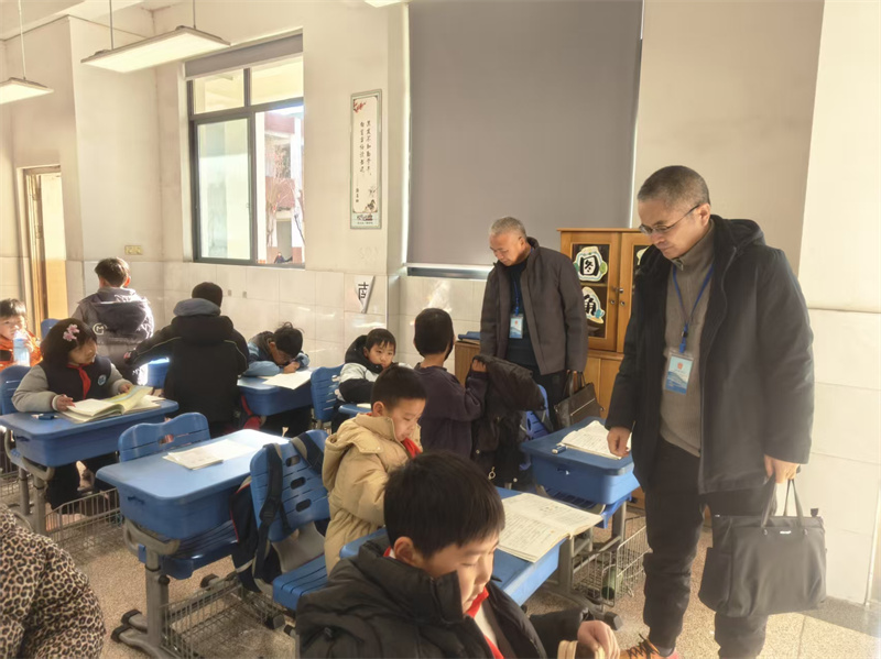 两位督学通过校园巡视、询问情况、查阅资料等方式进行现场督查。检查中,沈志良主任和徐根泉书记细致询问了八都学校学生到校和大课间活动情况,对学校的“双减”工作表示满意。