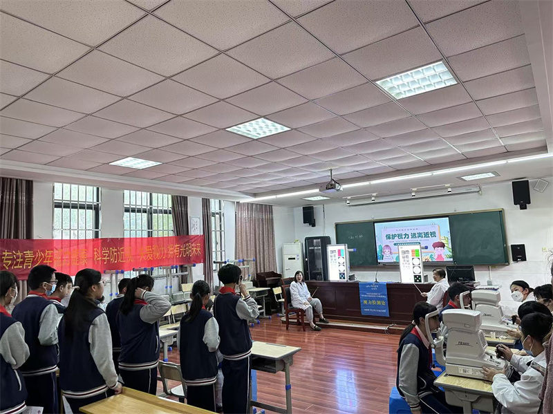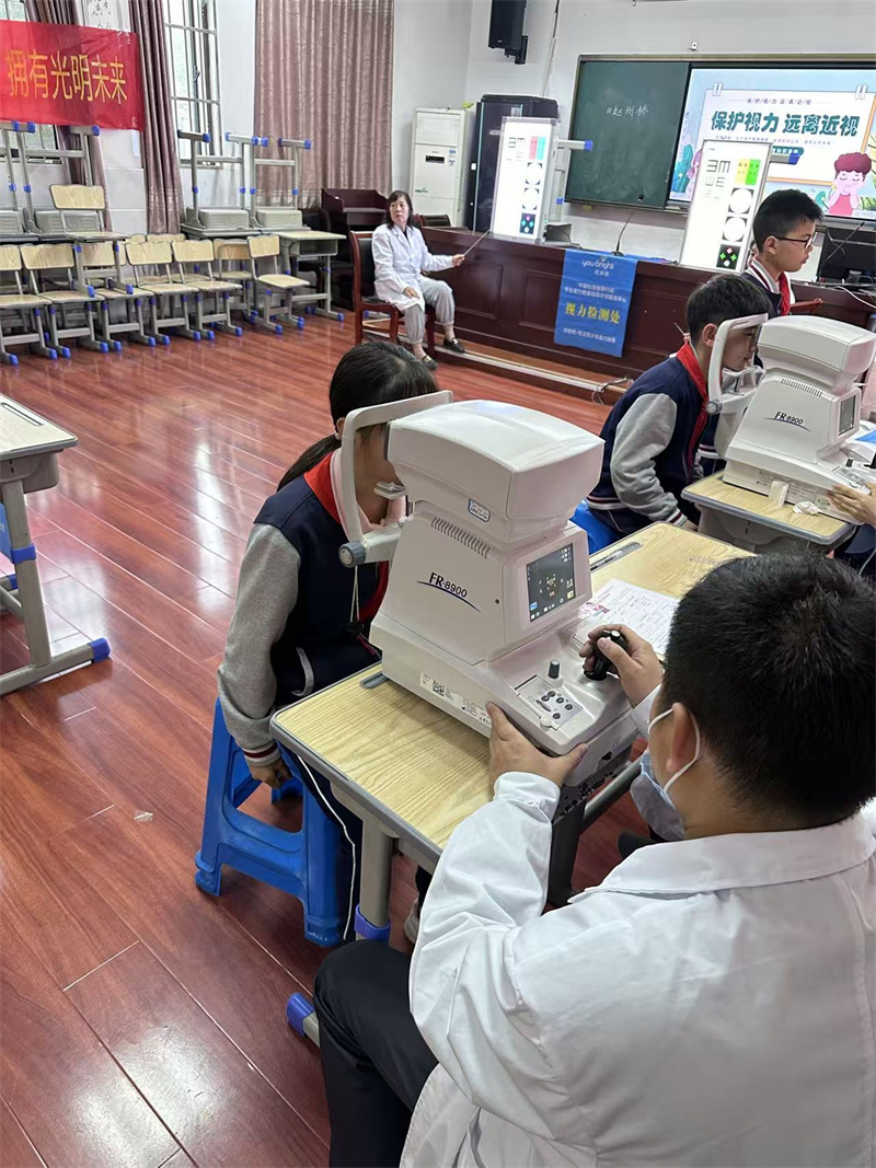 本次校园视力检测有学生的屈光度检测以及远视力检查。在老师与医务人员的积极组织下,学生的视力检测工作有序地进行。医务人员及时详细记录,保证数据的真实、严谨,整个检查过程安全又有序。