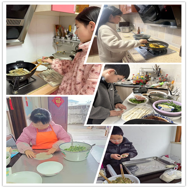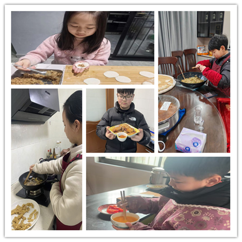 人间烟火气,最抚凡人心。除夕夜的餐桌上,怎么能少了自己的劳动成果?同学们系上围裙,走进厨房,有模有样地跟着家人学做年味菜。无论是包得胖乎乎的饺子、圆滚滚的汤圆,还是金灿灿的春卷,每一道食物都饱含着劳动的快乐和家的味道。