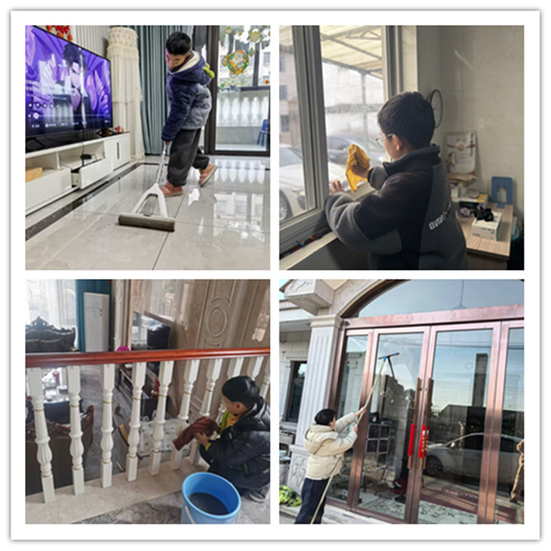 “轻持扫帚掸埃尘,墙角纤丝细细巡。”扫尘,是春节前必不可少的仪式感。擦亮一扇窗,整理一张桌,清扫一间房……同学们用小小的双手,担起了一份家庭的责任。窗明几净的背后,是对新年最美好的期许,也是劳动教育最生动的实践。