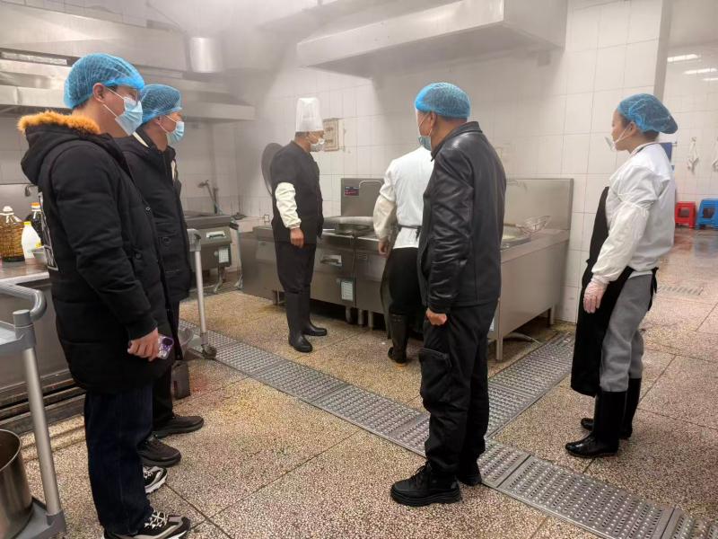 吴书记一行先后查看了食材加工设备清洁维护、库房原料储存管理、食品留样规范执行及后厨操作流程等关键环节,仔细核对食材保质期、留样记录与卫生防护情况,现场协调解决发现的问题。
